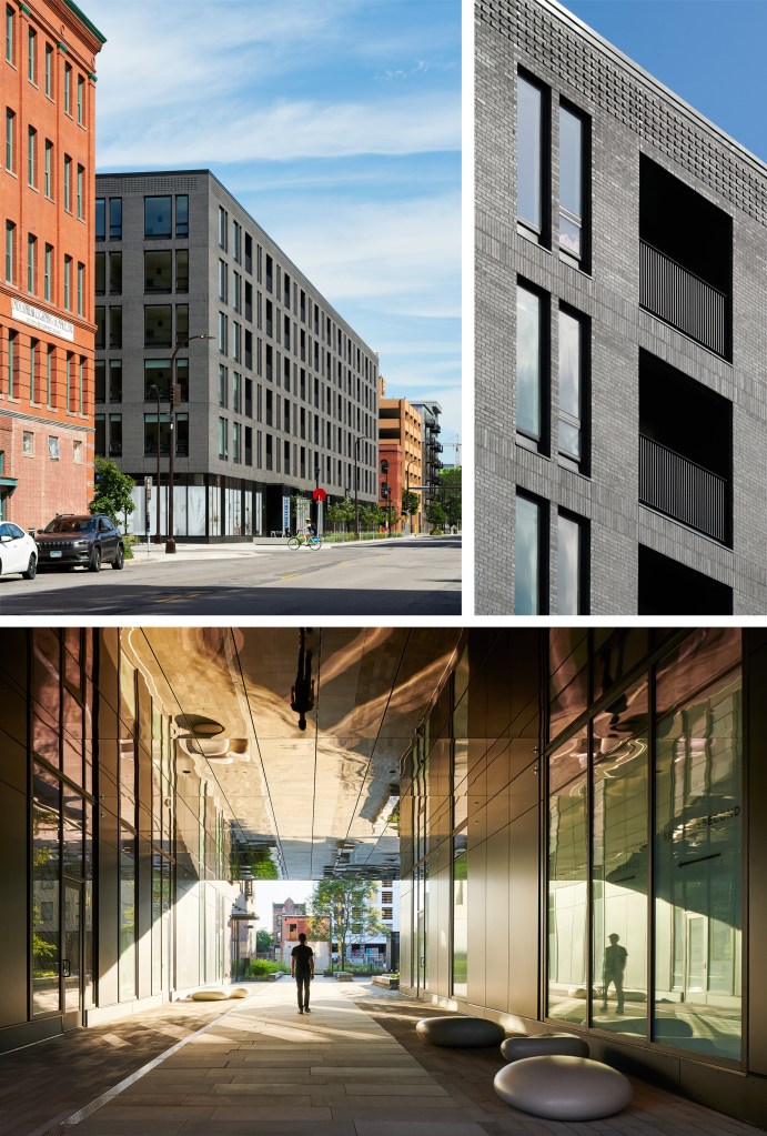 Ik werk aan The West Hotel, een project in Minneapolis, waarbij een aantal historische gebouwen wordt herontwikkeld en aangevuld met nieuwbouw. We werden gevraagd een ontwerp te maken voor de restauratie van twee historische gebouwen in het voormalige pakhuizendistrict van de stad. Het was een belangrijk knooppunt in de voormalige trans-Amerikaanse spoorwegindustrie op een kruising met de Mississippi. Het nieuwe gebouw voegt zich naadloos tussen de historische panden en creëert een nieuw ensemble. Het respecteert hun schaal en doet tegelijkertijd respectvol de grenzen tussen oud en nieuw vervagen, waardoor de locatie een nieuwe betekenis krijgt.
