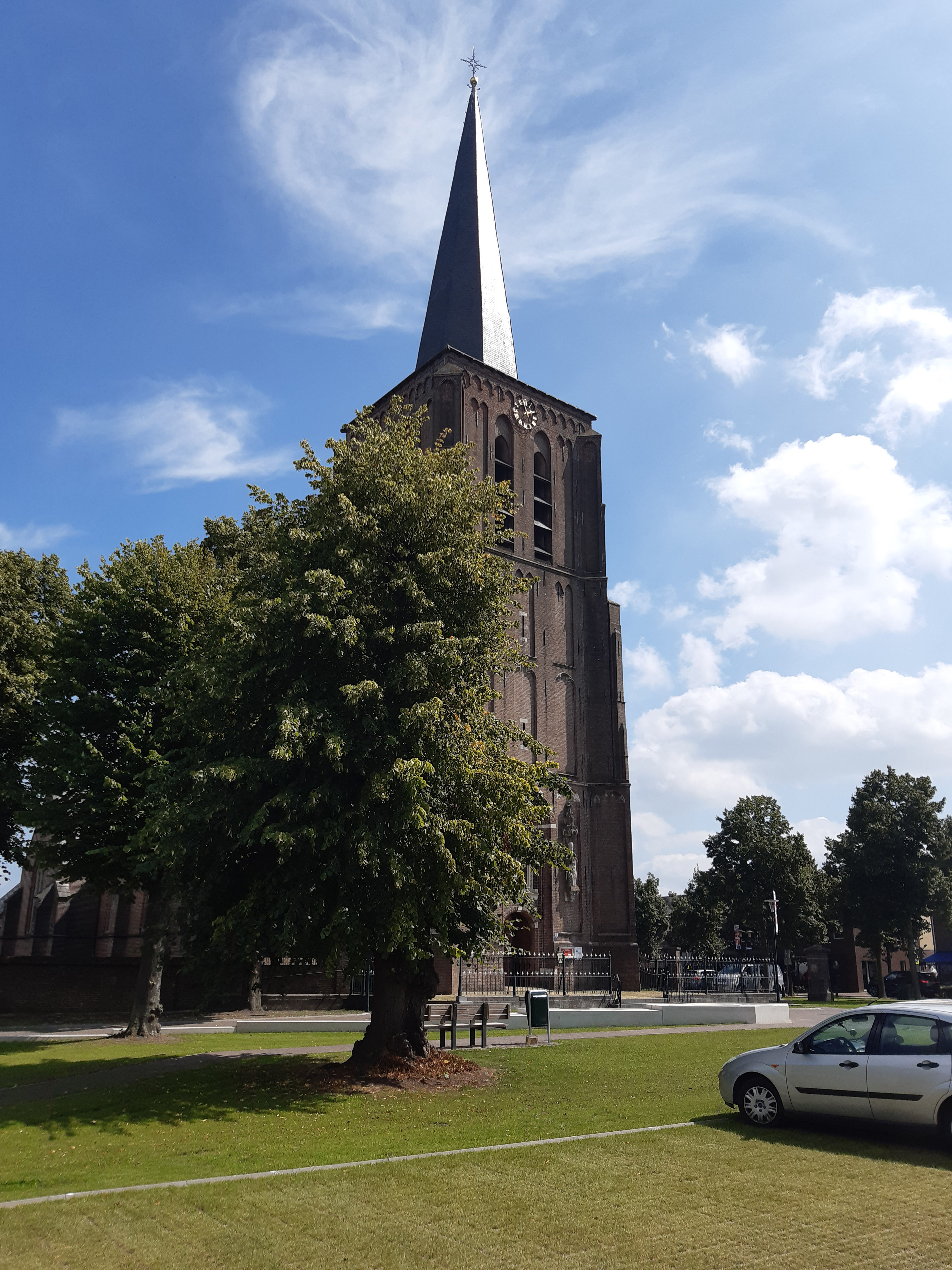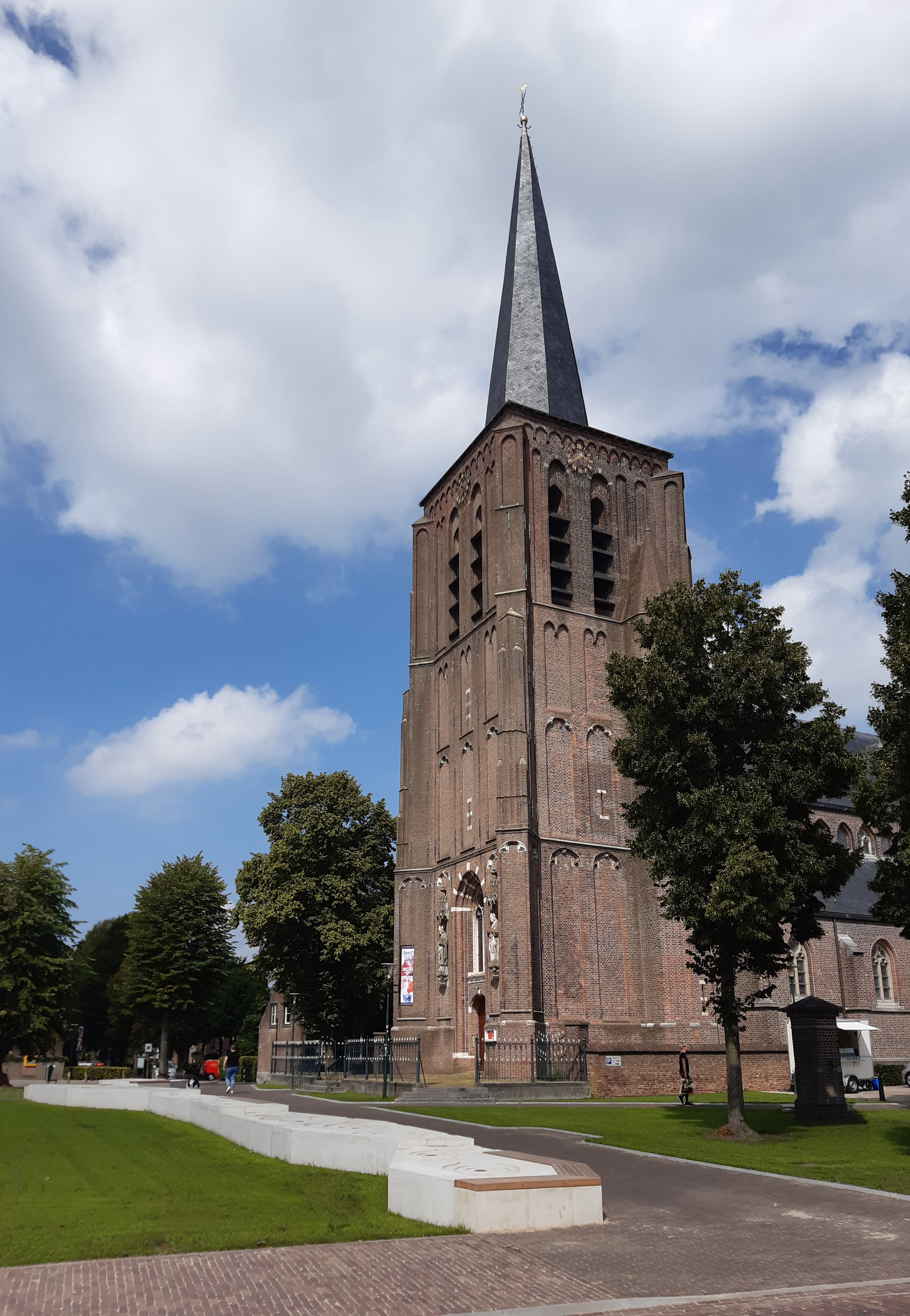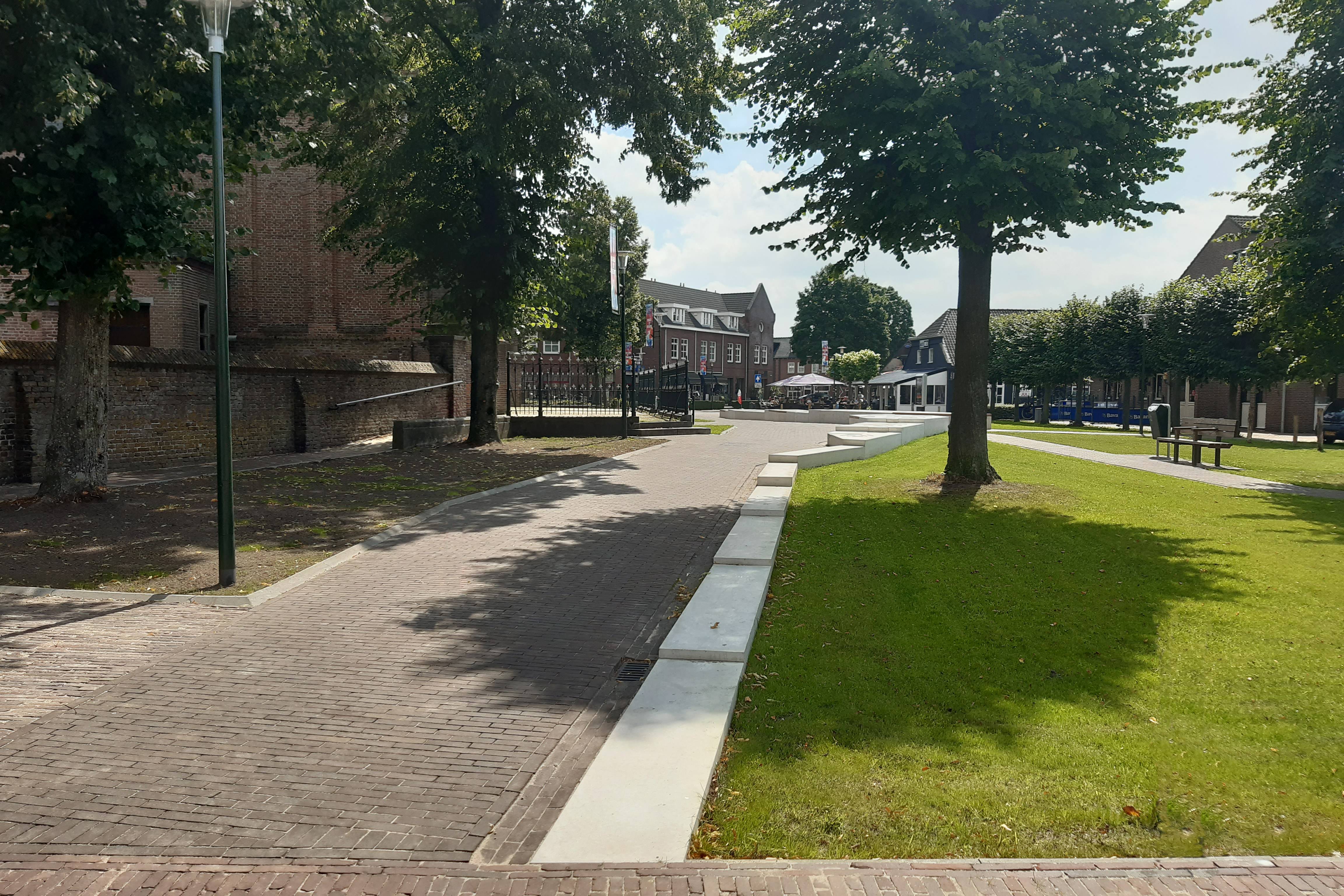 Het plein rond de kerk is ontstaan doordat begin jaren tachtig een klooster, een school, het oude gemeentehuis en het dorpscafé gesloopt werden en vervangen door parkeerplaatsen voor het nieuwe gemeentehuis en een supermarkt. Door het parkeren beter in te delen gaan er nauwelijks parkeerplaatsen verloren en ontstaat er ruimte voor groen. Door de stenen vlakte met gras en bomen in te vullen krijgt het plein zonder gebouwen toe te voegen het dorpskarakter terug.